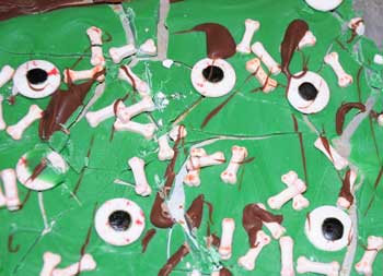 Make Halloween theme bark with adding candy eyes, bones, candy corn