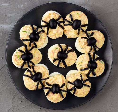 Create Halloween theme mini pizzas. Use olives, peppers, cheese cut