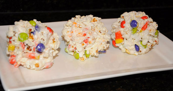 cooking spray and form popcorn balls. It will be sticky so cooking