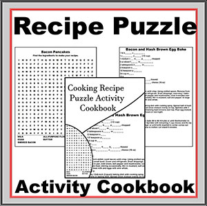 This Cooking Recipe Puzzle Activity Cookbook 50 Word Search and fill in the blank with the ingredients list Puzzle Recipes. Fun unique activities to add to your cooking classes and lessons. Each recipe has a word search with the ingredients list. The following page has the actual recipe with fill in the blank puzzles with the words found in the word search. Two sections included in the fun puzzle cookbook: See details on this digital download product here. Next IssueWhat would you like us to talk about in upcoming issues of the Kids Cooking Activities newsletter? Send me your ideas or reply to this email and if I use it I'll send you a free ebook.Have a great time cooking!