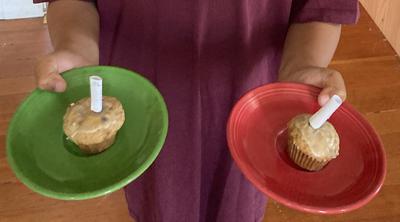 Instructions (invented by 6 year old): Bake at 350 for 15 minutes. Wait to cool, then frost. Put a toothpick in the top of each cupcake. Write a fortune on a small piece of paper. Roll up the paper and add a small piece of tape to keep it rolled up, then put it over the toothpick so it stands up on top of cupcake.