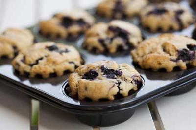 Line the muffin tray with paper liners. Take a large bowl and mix all the listed ingredients, excluding blueberries. Blend together until the mixture is firm. At the end fold in the berries. Take a spoonful of the prepared mixture and fill each muffin liner.