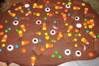 For a Halloween Frankenstein theme, add candy eyes to melted green