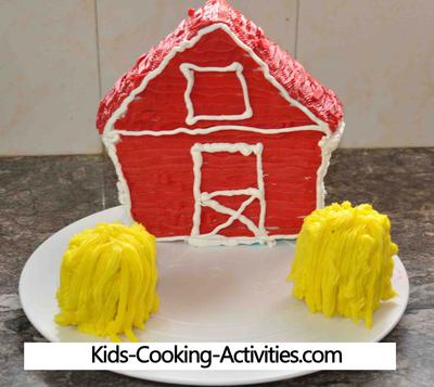 house cake pan like we did in this tutorial or cut a 13x9 cake into a barn shape. Trace an outline on a piece of paper before cutting your cake out if you prefer. If you'd like to add hay bales, bake a few cupcakes as well.