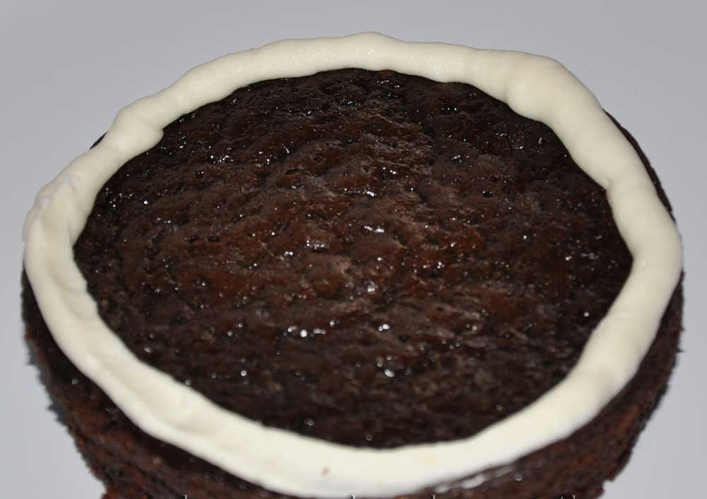 squeeze a ring of icing around the outer edge of your layer. Just do